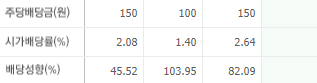 시가배당률은 1.40 ~ 2.64%입니다.