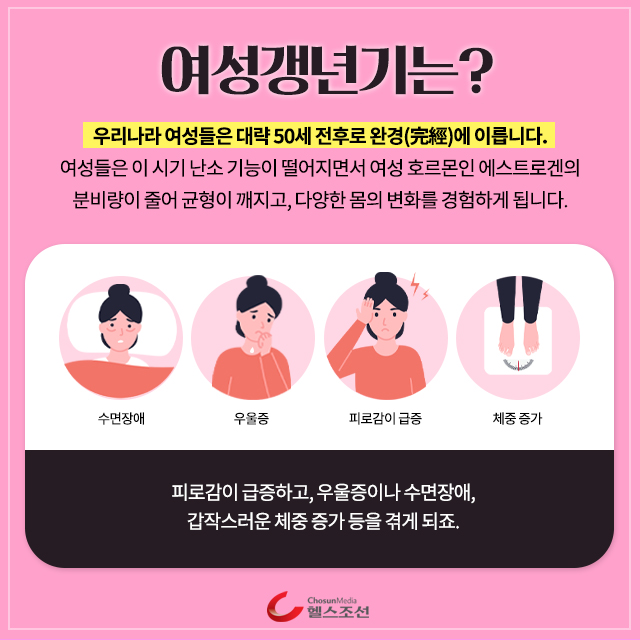 이 때 여성호르몬의 감소로 신체적, 심리적으로 변화가 일어나곤 합니다.