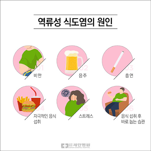 역류성 식도염이란 '위'에 있는 내용물 또는 위산이 역류하여 식도에 염증을 일으키는 것을 말합니다.