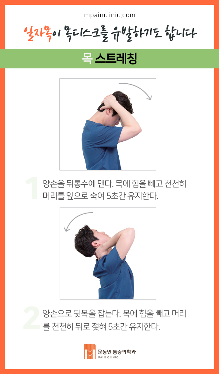 목디스크에 좋은 운동으로는 스트레칭형 운동들이 있습니다.