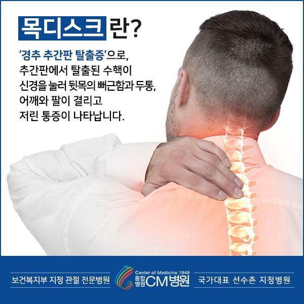 목디스크란 이 추간판이 후방으로 탈출하여 신경을 압박하는 상태를 말합니다.