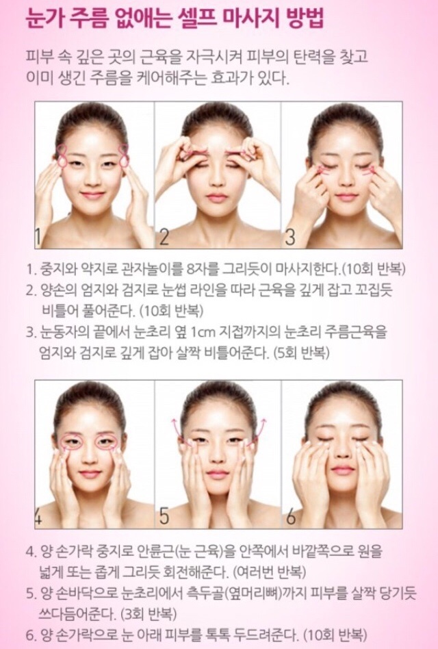 눈가 주름에 좋은 마사지 방법은 다음과 같습니다.