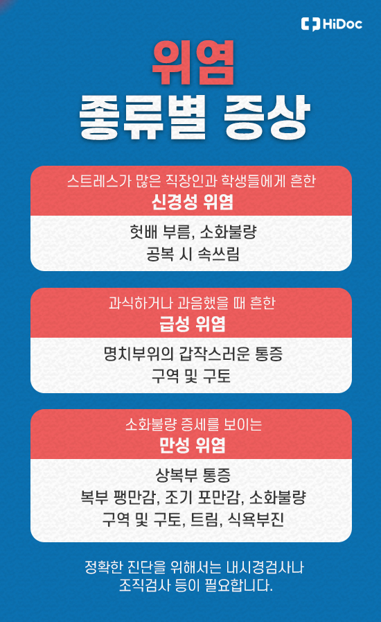 또한 위염은 크게 급성 위염과 만성 위염으로 나눌 수 있습니다.