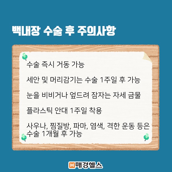 또한 백내장은 합병증 발생 확률이 높기 때문에 제 때 치료를 받는 것이 좋습니다.