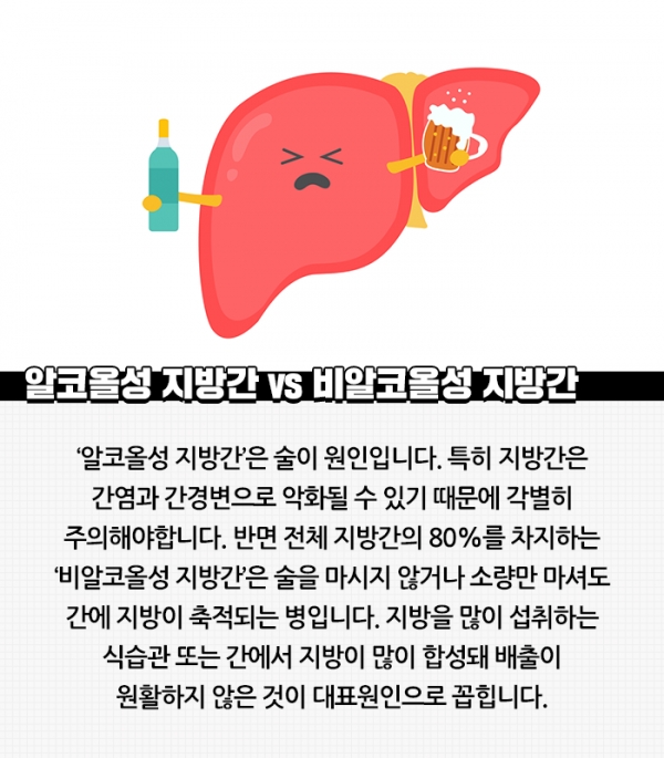 또한 지방간은 별다른 증상이 나타나지 않아 검사를 통해 발견하곤 합니다.