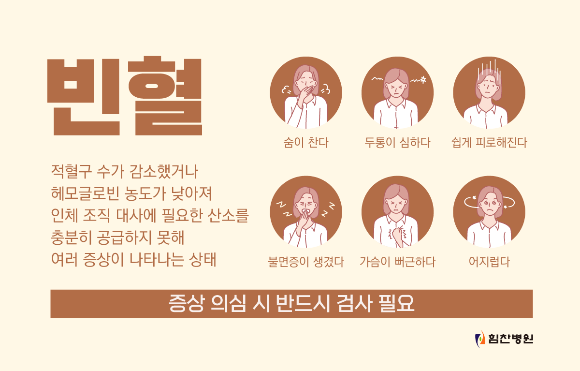 빈혈은 산소의 운반을 담당하는 헤모글로빈이 감소하여 발생하는 혈액 질환입니다.