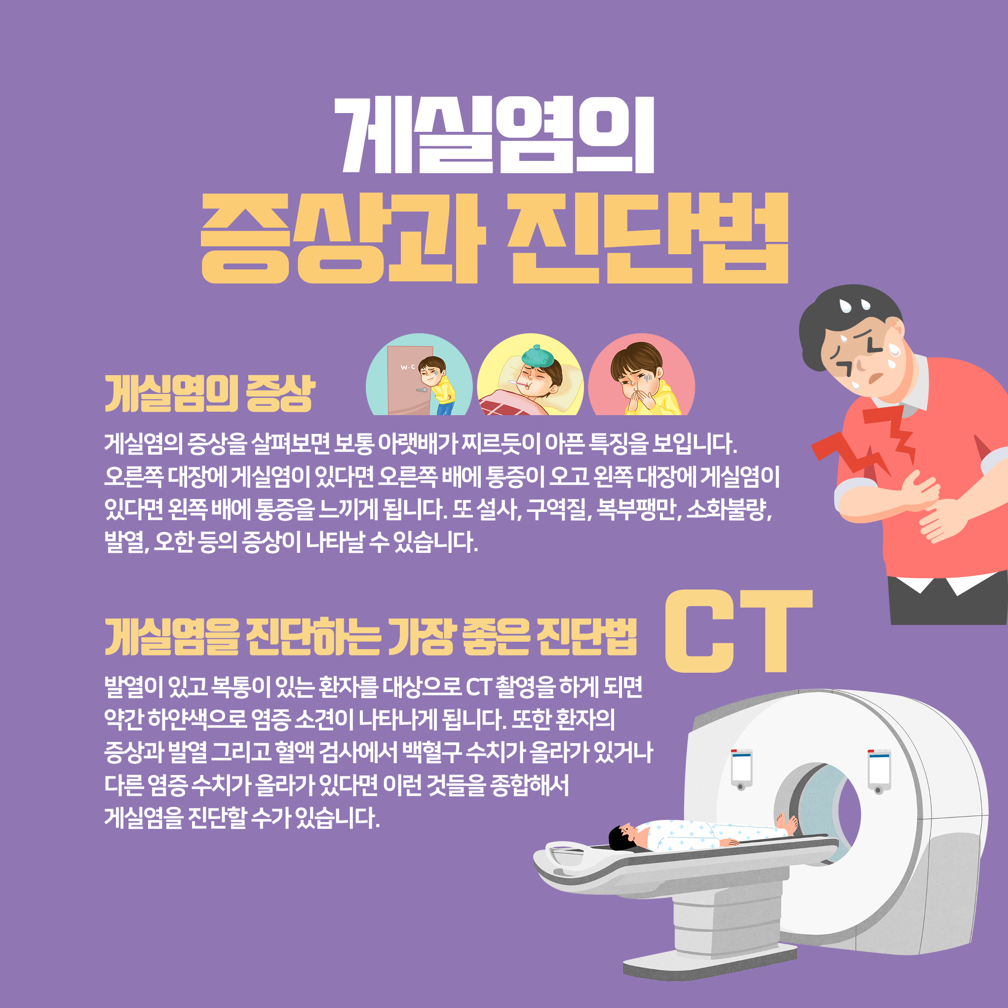 게실염은 대장의 압력이 증가하여 대변 덩어리가 게실벽을 손상시키고 염증이 발생하는 질환입니다.