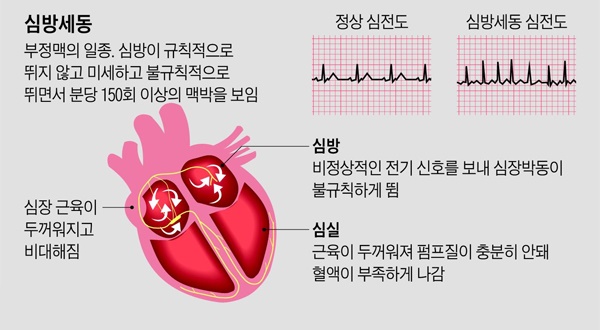 심방 세동은 심방이 불규칙적인 맥박을 일으키는 질환입니다.
